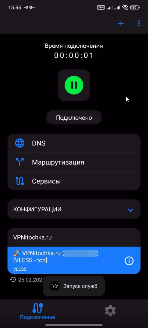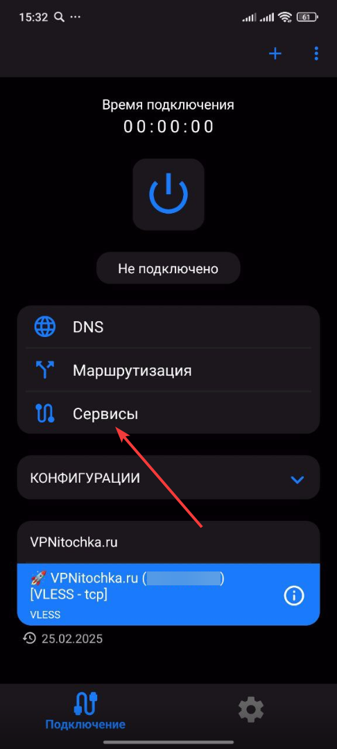Зайдите во вкладку «Сервисы» перед первым подключением.