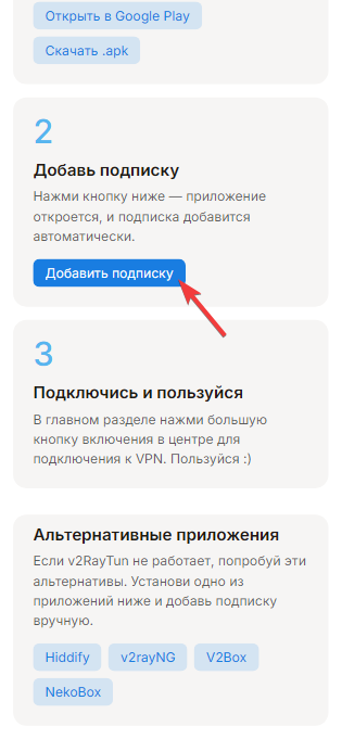 Во втором шаге нажмите на кнопку «Добавить подписку»