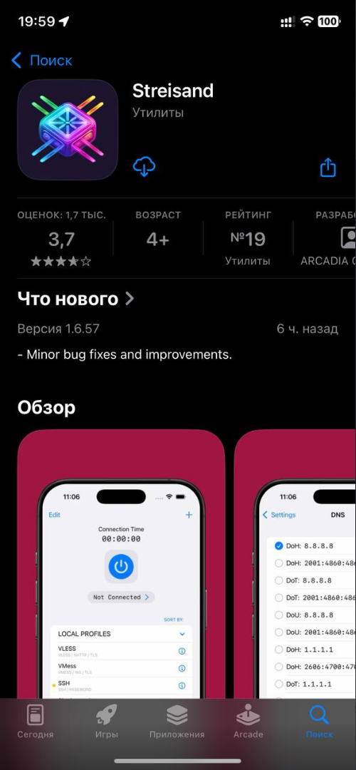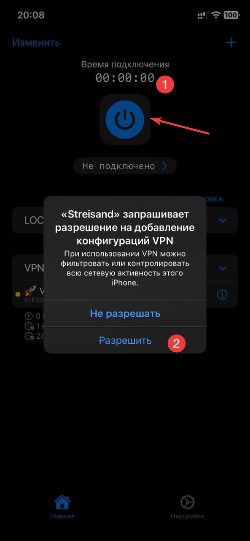 Подключение к VPN через Streisand на iOS