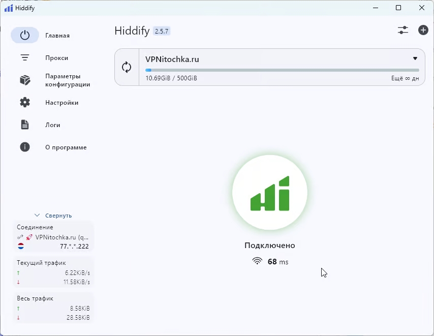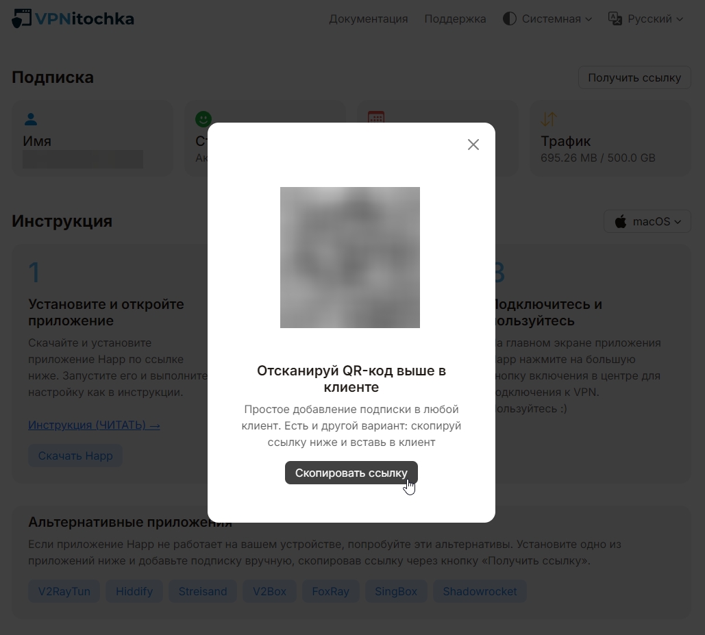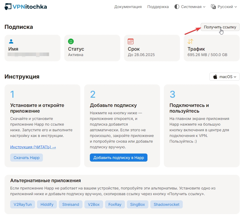 Зайдите в AppStore и скачайте Hiddify на ваш Mac.