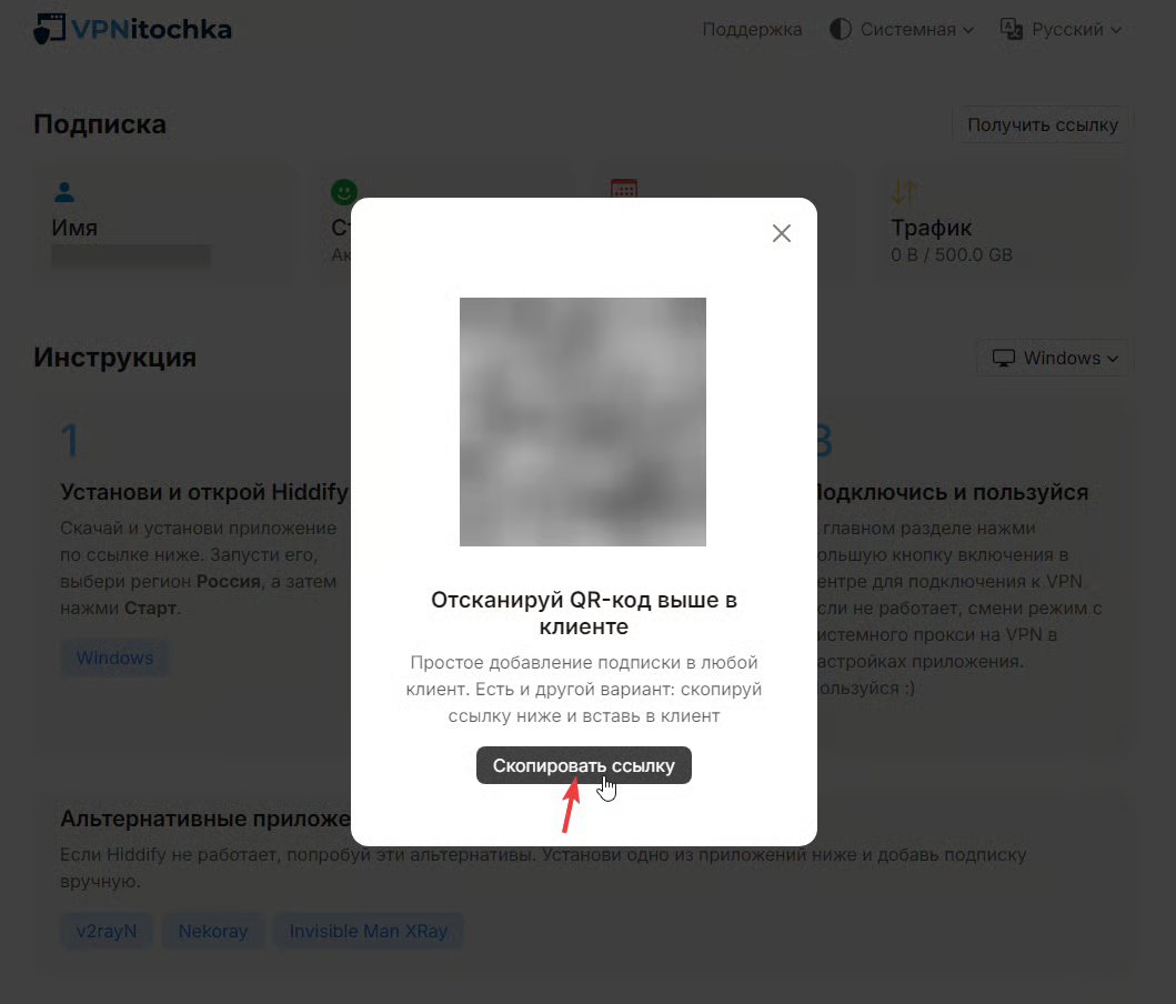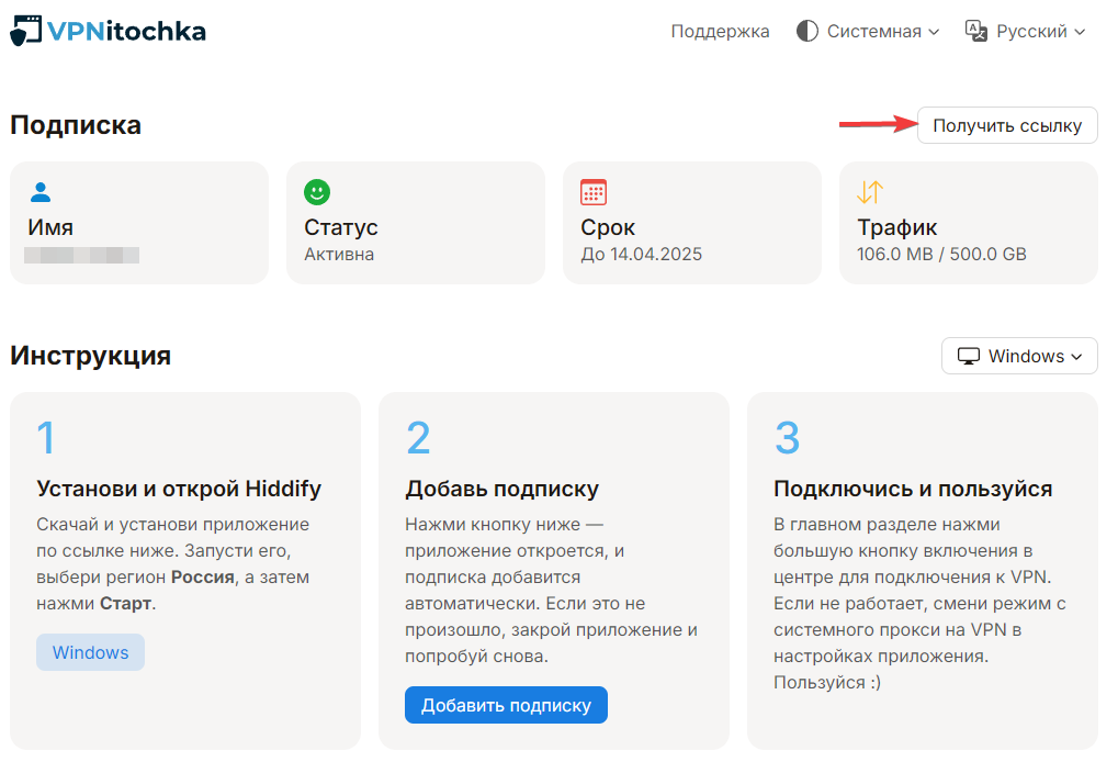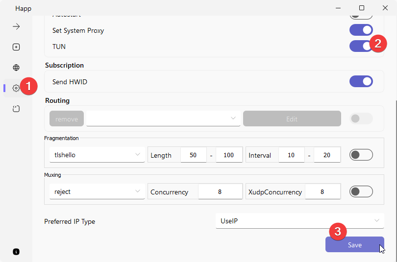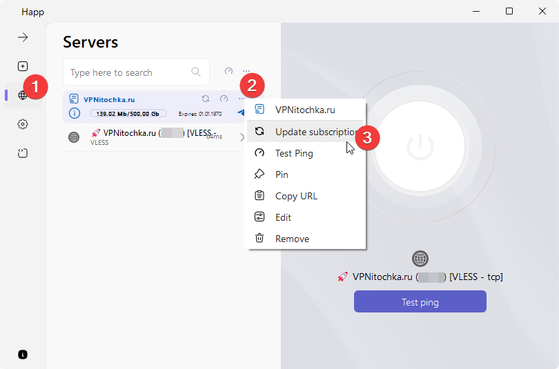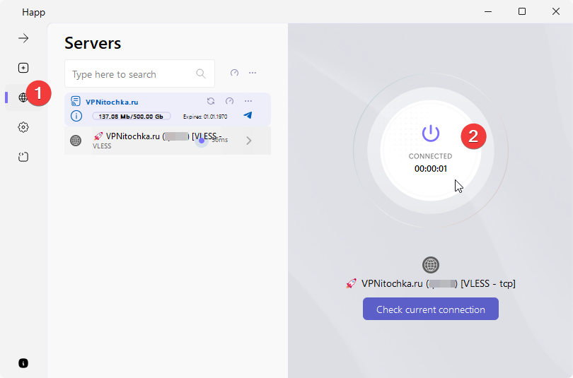 Подключение к VPN через Happ на Windows